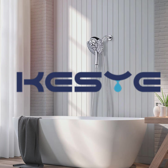 The KESTE 2-in-1 shower head combines a fixed overhead rain shower with a detachable handheld spray. This dual shower head delivers a high-pressure spray for a luxurious and comfortable bathing experience. When the rainfall shower head and handheld spray are combined together, they can provide an immersive rain shower spray with a width of 7.2 inches. The handheld showerhead can be detached. This makes it ideal for bathing children, pets, or cleaning the bathroom. The system features three main modes (Rainfall spray, Handheld spray, or Rainfall+Handheld ), while the handheld spray itself provides 10 spray settings to suit all your needs. Crafted from premium ABS material, it is both durable and impact-resistant.