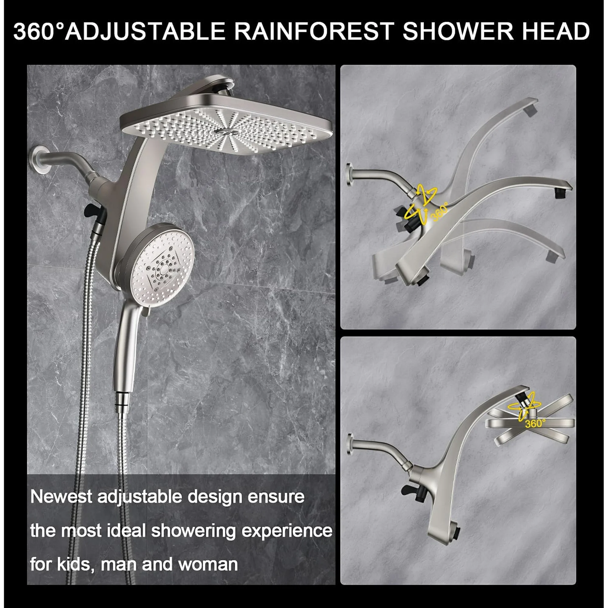 - 2.Larger coverage shower heads with handheld spray combo, our large 12 inch square shower head allows for full body water coverage. Equipped with 10 spray settings hand held shower head, you can enjoy cozy showering, extra 2 different mode power jets can clean your pets or wash your bathroom and bath easily