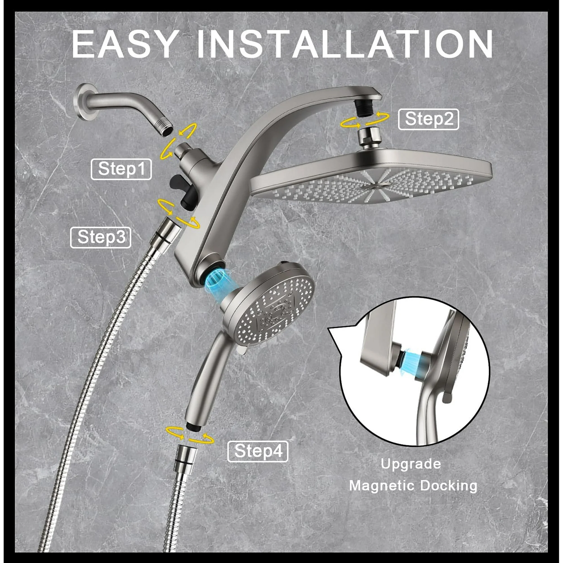 - 1.Upgrade technology ensure amazing showering experience, compare with original magnetic shower head, our rain shower head adopts strong metal magnetic combin buckle structure which can hold your handheld shower head firmly (Patent NO: US011857983B2 & US12269049B1)